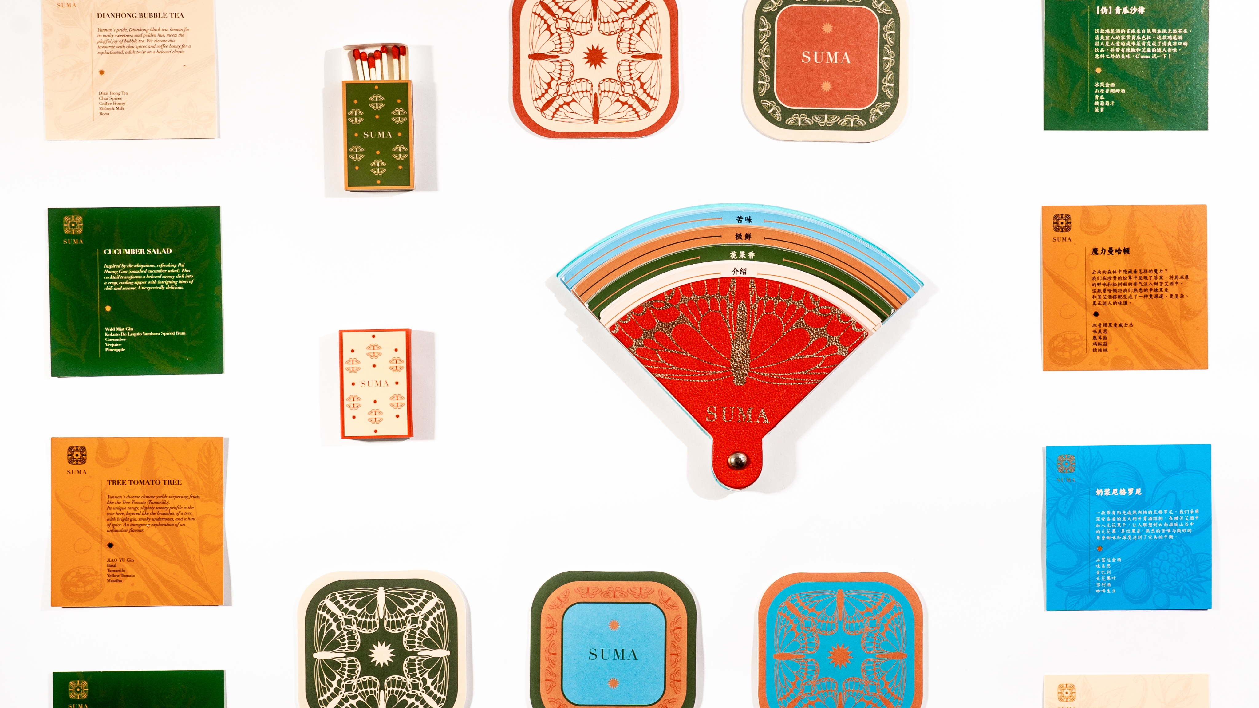 SUMA 是香格里拉昆明酒店内的生活方式酒吧,专注于提供高品质社交空间和当代东方美学。其品牌视觉从云南刺绣和传统剪纸艺术中汲取灵感,通过蝴蝶和太阳的几何图形象征生命与能量。设计简约而现代,充分结合了香格里拉一贯的精致国际形象,同时融入了昆明独特的在地文化,打造出一种舒适且高品质的社交氛围。
